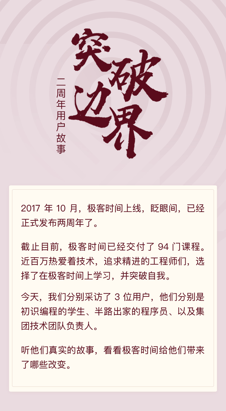 遇见极客,学习、记录、分享、成长!保持学习动力。两周年快乐!