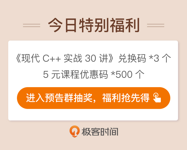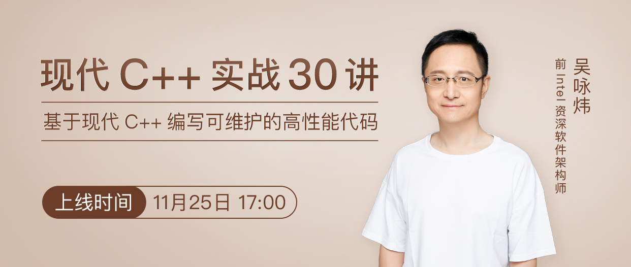 而这些新特性以及相关的编程实践,正是我将在《现代 C++ 实战 30 讲》专栏和你分享的部分内容。