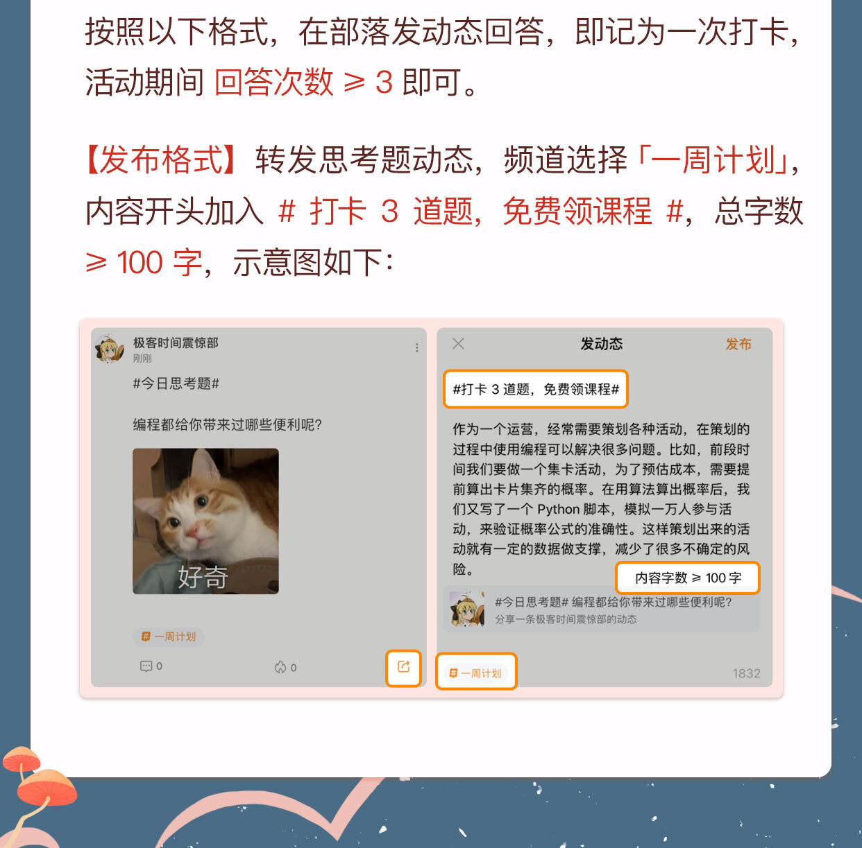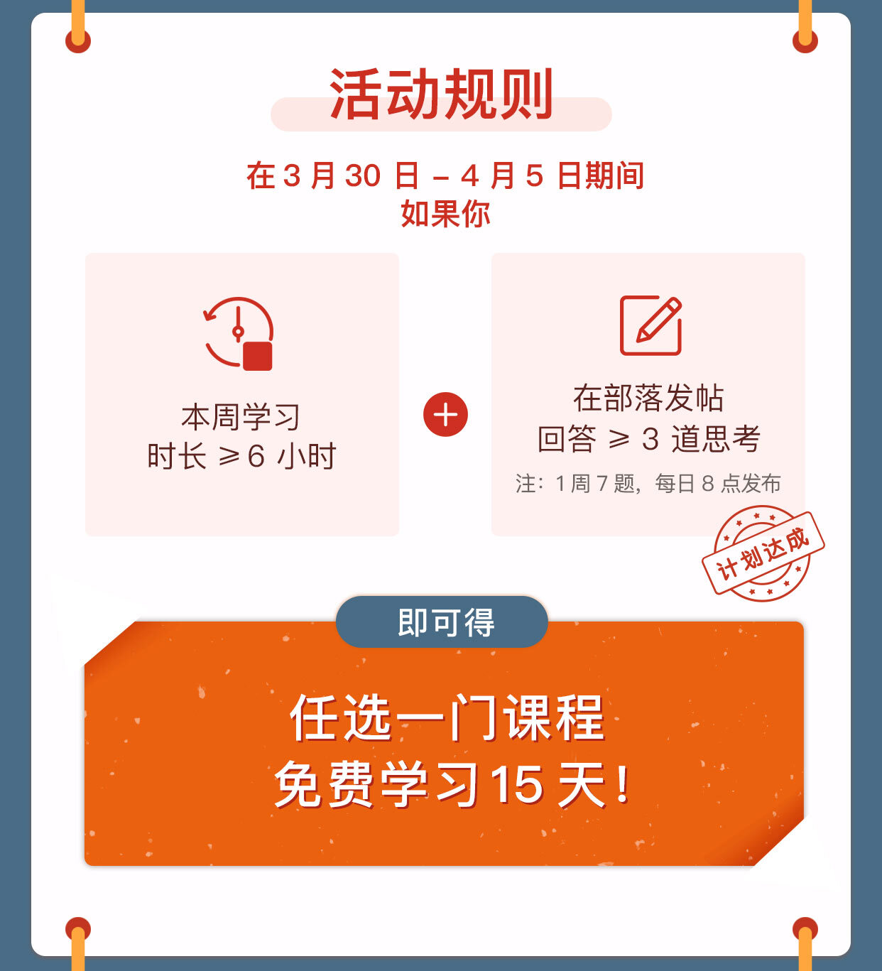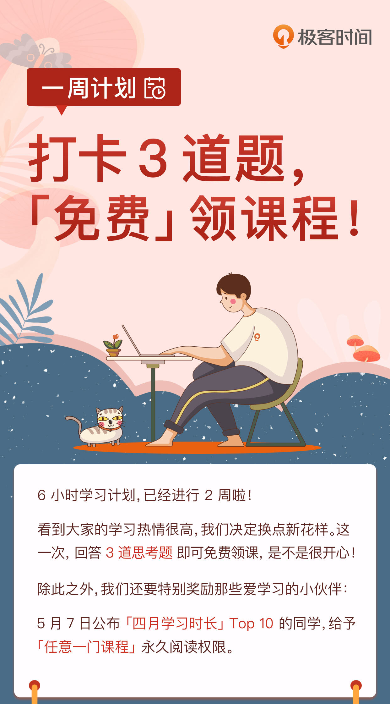 一周计划:打卡 3 道题,免费领课程