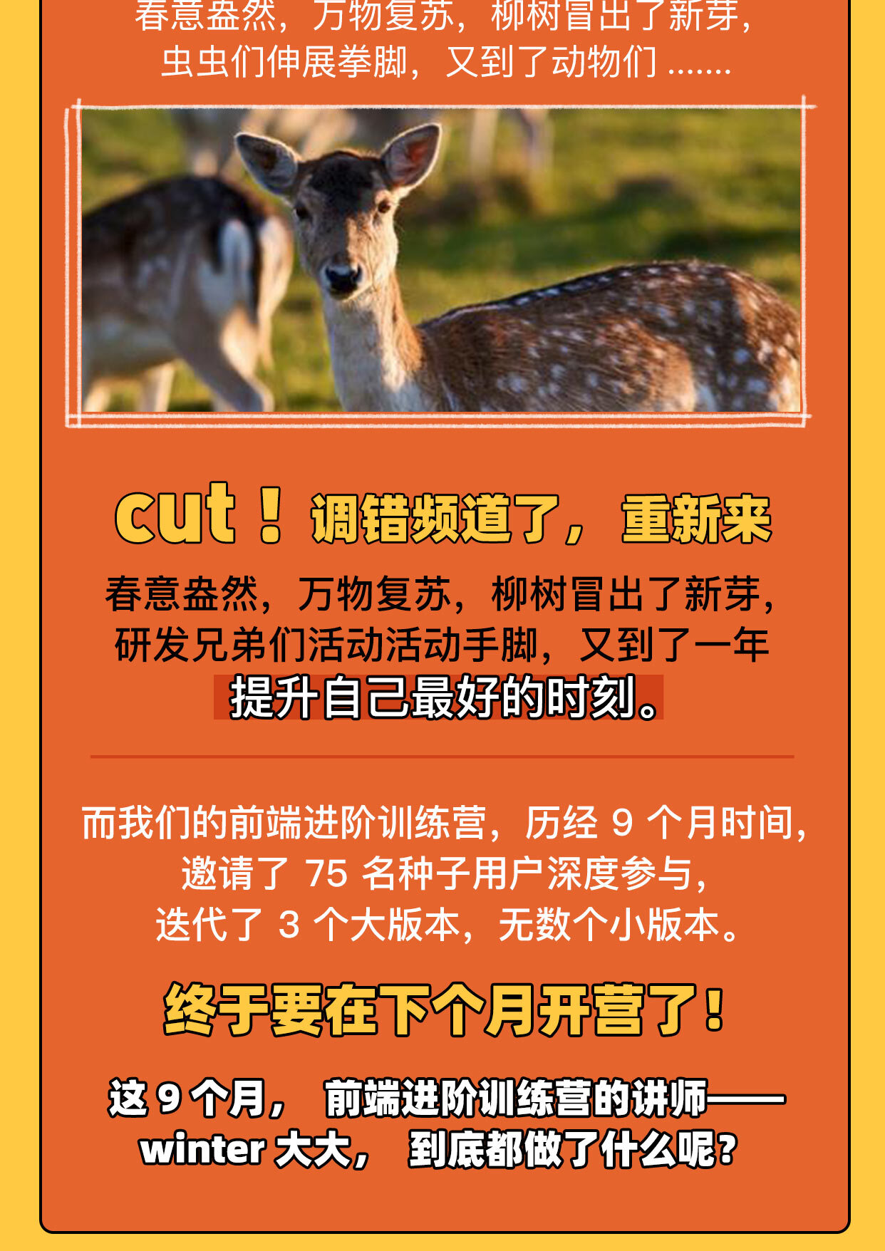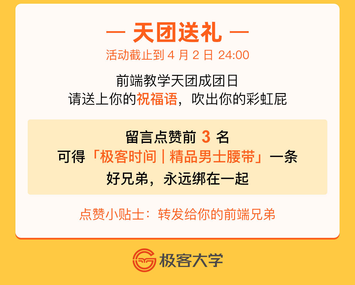 前端教学天团强无敌,看过winter老师,宇曦班班的直播感觉都特别好,麦子教研一定非常棒!祝前端训练营越做越好,祝极客大学越来越棒!
