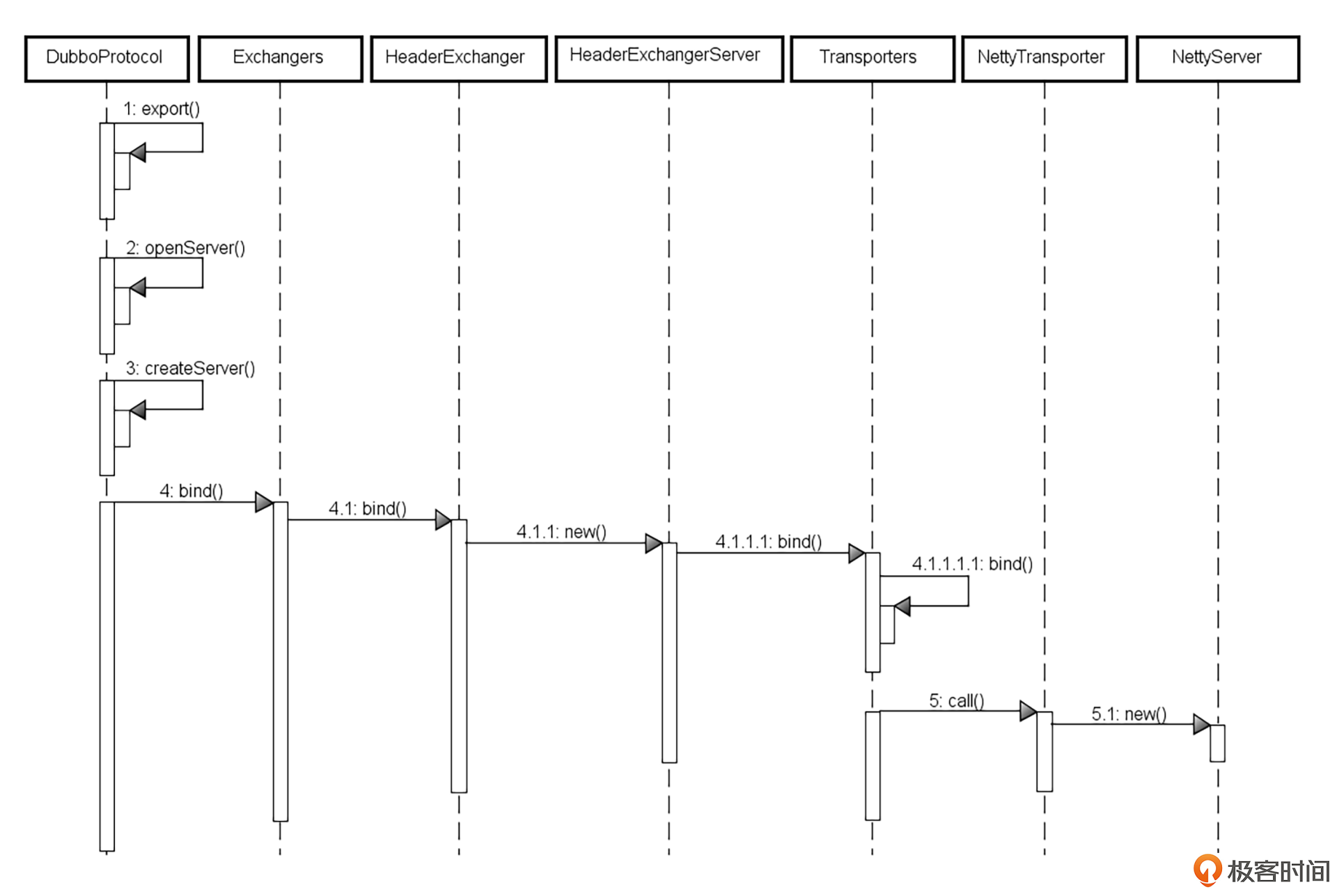 图6 Dubbo服务器端通信的完整时序图