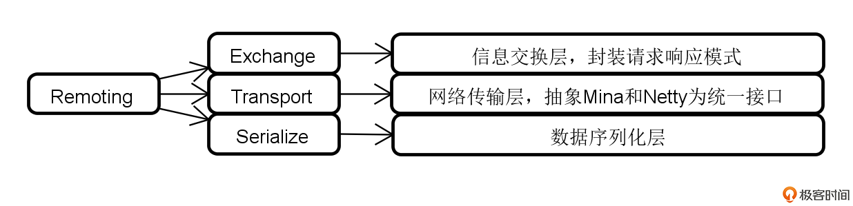 从功能定位上讲,Remoting 模块主要包含三个组件,即: