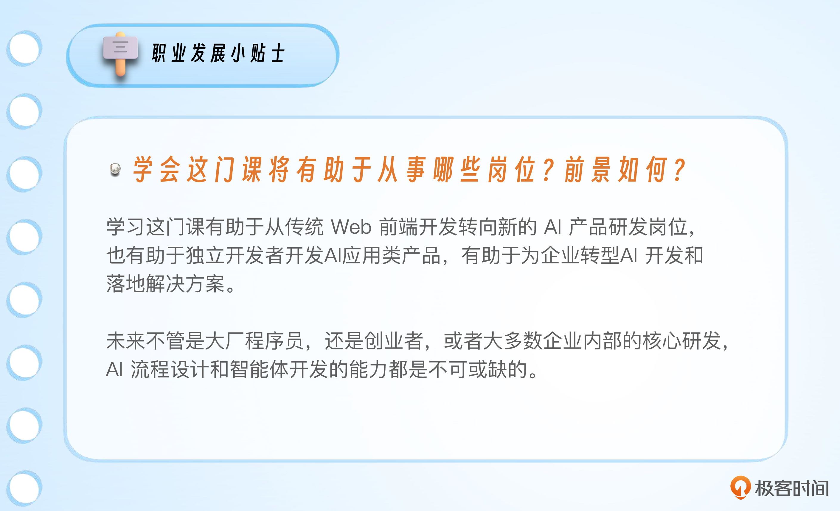 正如同前面所说,本课程的目的就是帮助前端工程师在 AI 时代自我重构,做好迎接未来的充分准备。