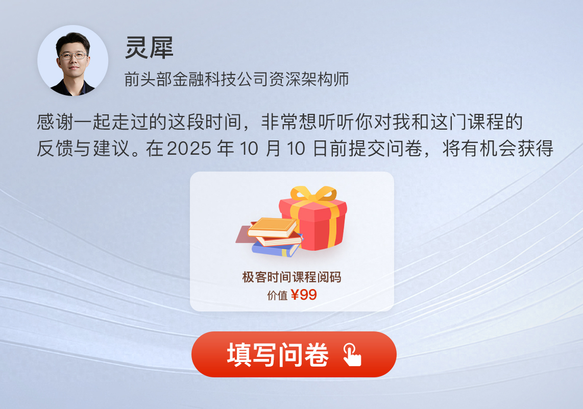 《智能原生架构实战》正式结课了,为一直坚持学习的你点赞!为了帮你检验自己的学习成果,我特意准备了一套结课测试题。题目共有 20 道,10 道单选题,10 道多选题,满分 100 分,快来挑战一下吧!