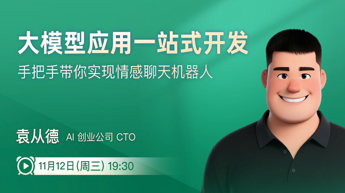 本次直播将带你了解大模型应用开发的系统方法论。从大语言模型底层逻辑,到实战搭建情感聊天应用;从聊天应用功能设计、基础搭建部署到商业化探索,全方位为你呈现大模型应用开发的关键要点与实施步骤。无论你是初学者还是有一定基础的 AI 开发者,相信都会通过此次直播得到启发。