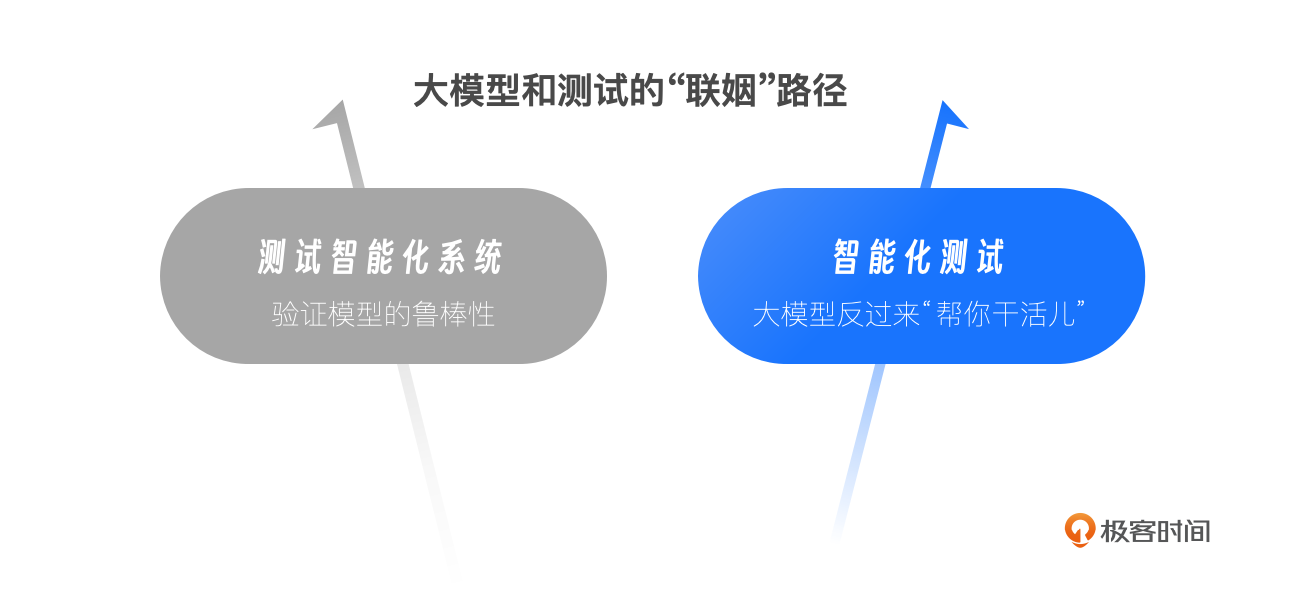 说起大模型和测试的“联姻”,其实有两条主要的路径。第一条,是当你的被测系统本身就是个“聪明蛋”——比如那些嵌入 AI 决策的智能应用,这时候测试就得升级成“测试智能化系统”的模式:我们得验证模型的鲁棒性、边缘案例的覆盖,甚至是幻觉输出的把控,确保它在真实场景下不掉链子。