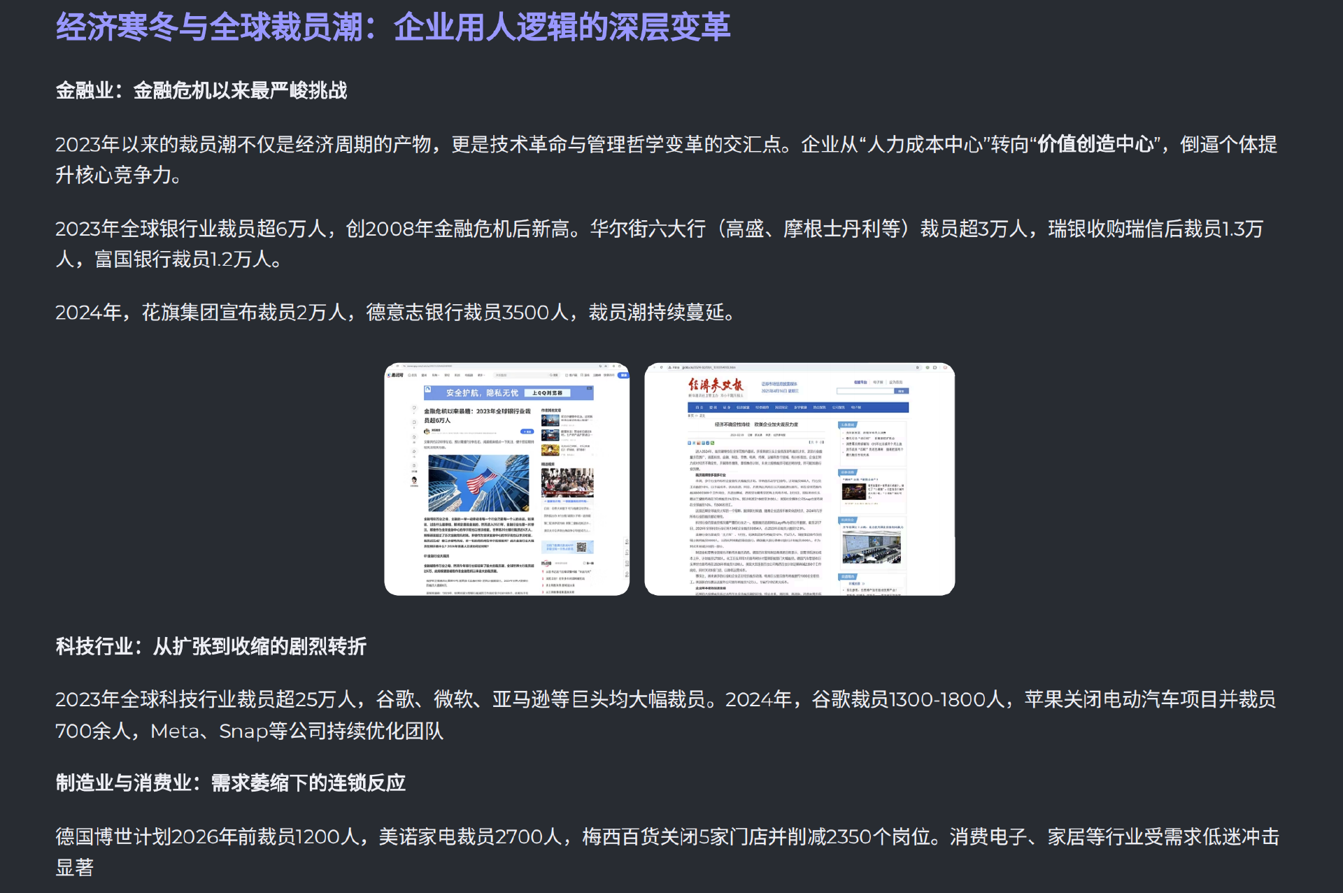 说到效率为王,这其实更多是为了应对我们眼前实实在在的危机——而这些危机,主要集中在金融、科技和制造这几个行业。