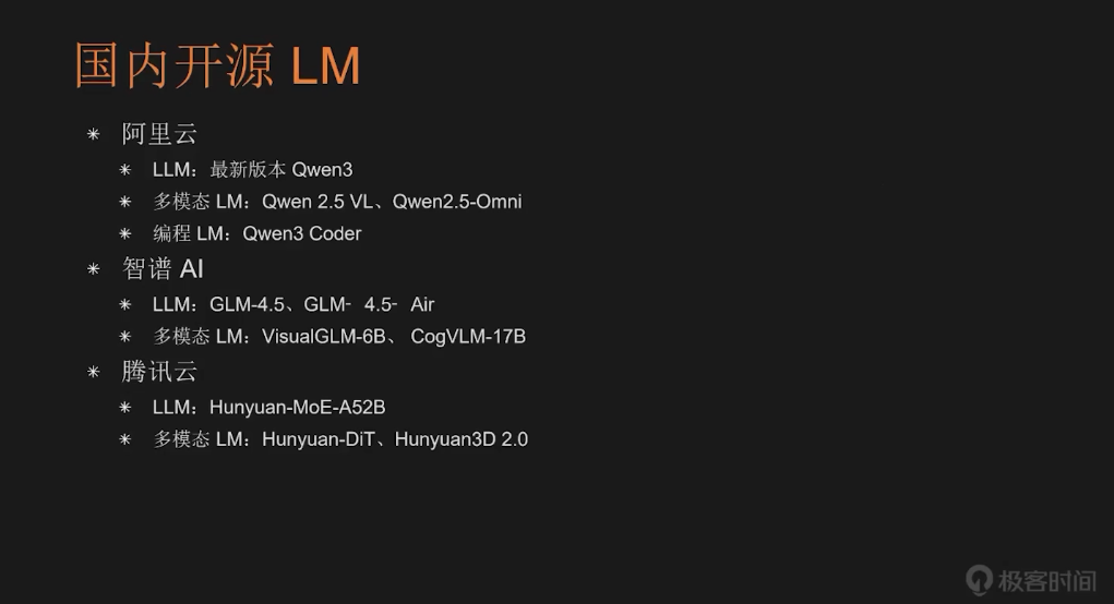 首先,最知名的是阿里云的千问系列(Qwen),最新版 Qwen3 已发布。其多模态版本包括 Qwen2.5-VL 和 Qwen2.5-Omini。阿里云在近期推出专用于编程的模型 Qwen-Coder,目前也非常受欢迎。