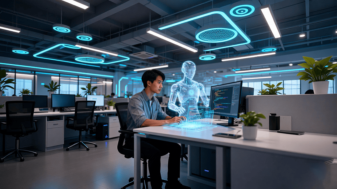 我是月影,属于一个老前端, 我 2004 年就参加工作了, 在 2008 年的时候刚好写了应该算是国内第一本 Java Script 基础的书,那个时候还是 ES3 的时代。我过去一直在百度、360、字节跳动,一直在大厂工作到 2023 年。2023 年 6 月份,我从大厂离职出来创业,为什么要创业呢,因为我看到了 AI 发展背后有着巨大的机会。