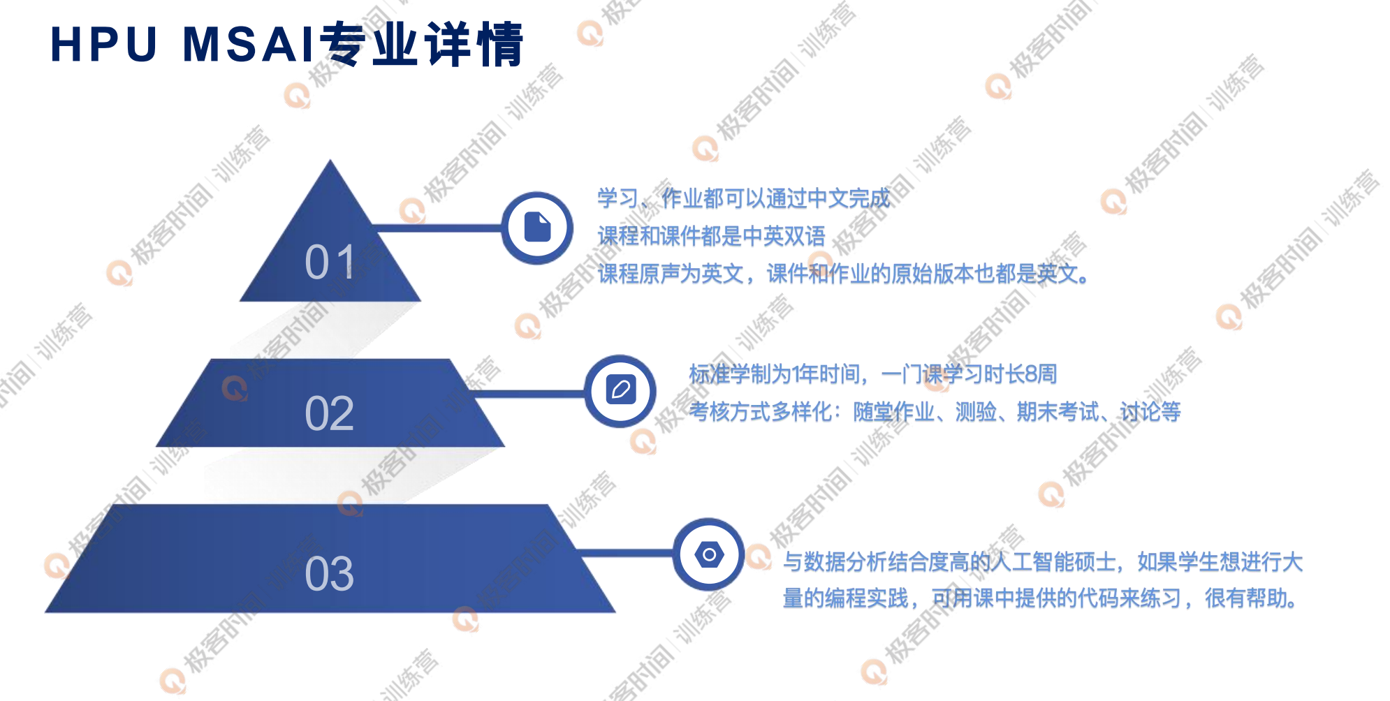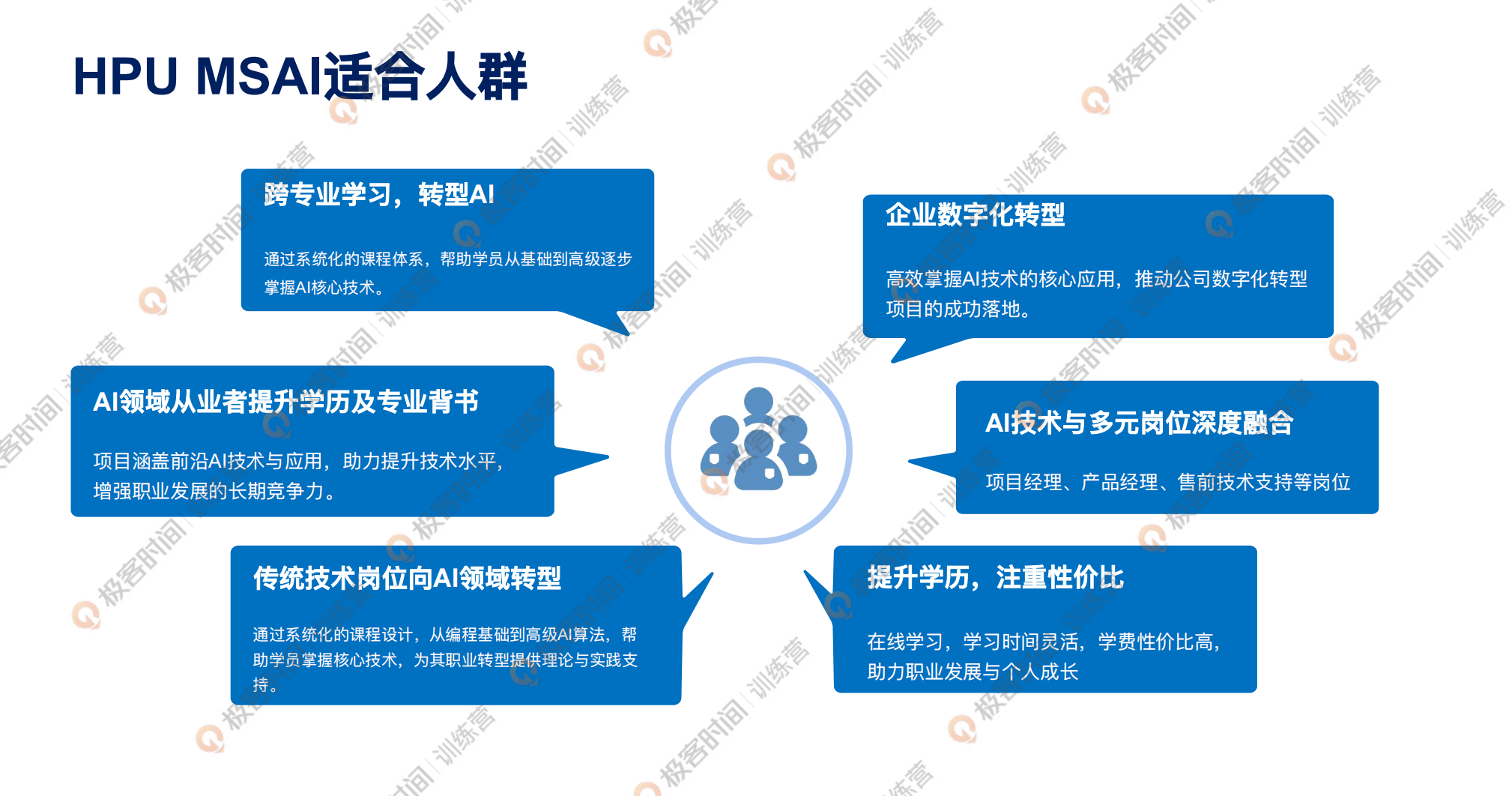 这个项目适合的人群,首先也是支持同学们跨专业学习的,无论你是否有计算机的技术背景,只要想学人工智能的硕士项目,都可以选择我们这个项目,它的课程设置也是从基础到进阶的方式,那还有一部分同学本身已经从事 AI 领域,需要提升学历以及专业背书,那这个项目也是满足的。