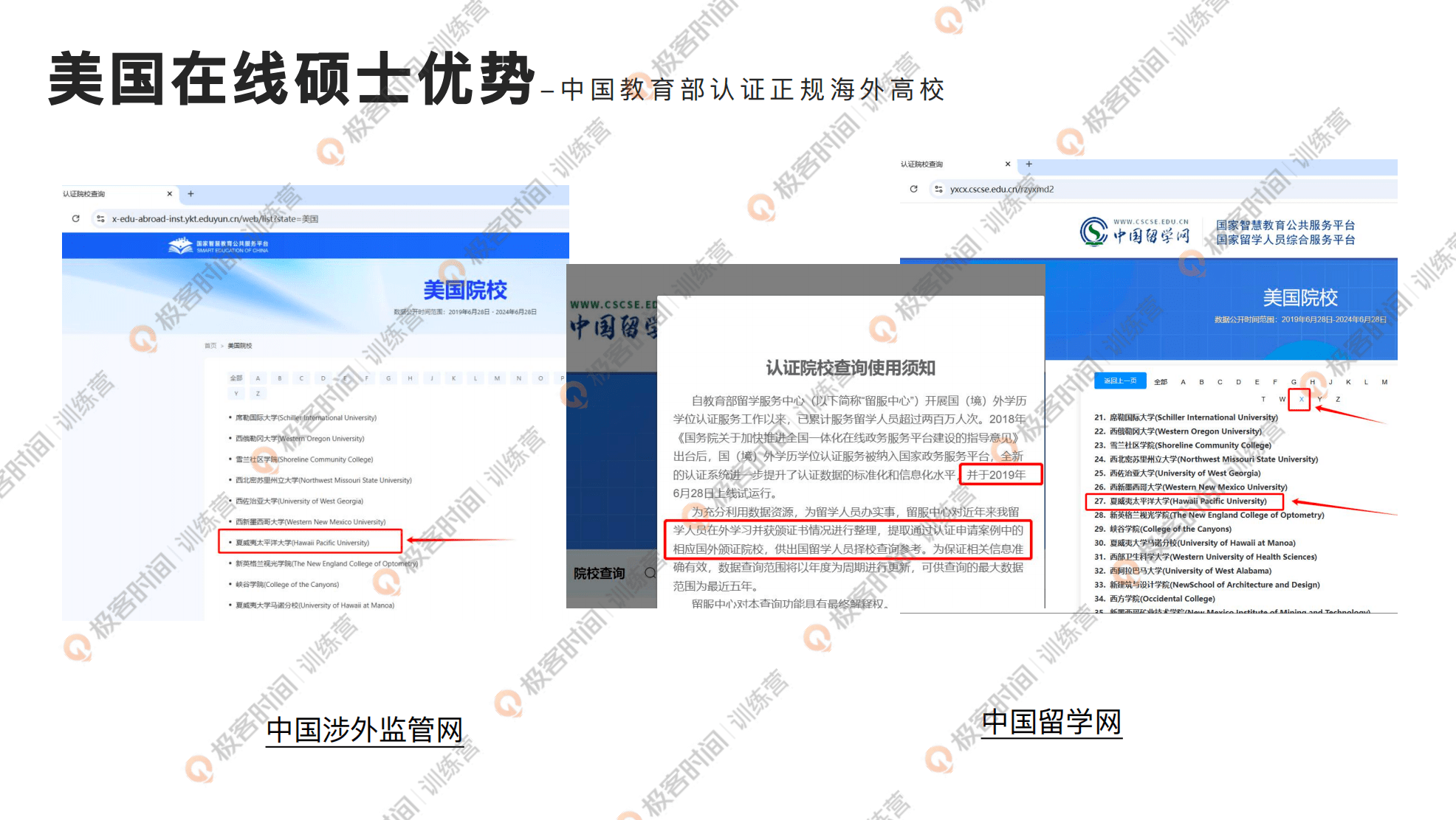 我们合作的院校也都是中国教育部认证的正规海外院校,在中国教育部留学网和中国教育部涉外监管网都是可以查询的院校,而且都是在美国教育部正规备案的学校,所以对于学校的正规性大家是可以完全放心去选择的。当然我们的项目也全部都是经过美国教育部备案的正规的项目。