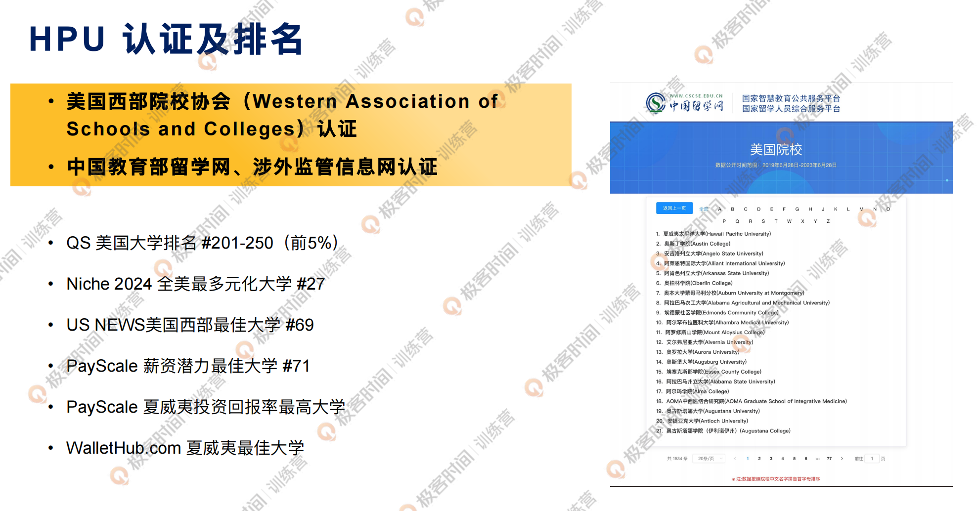 这所学校是中美教育部认证的正规的美国大学,除了学校的综合排名是在全美前 5%,它的全美最多元化大学是排到第 27,美国西部最佳大学是第 69 名,薪资潜力最佳大学第 71 名,也是夏威夷当地最好的一所大学。