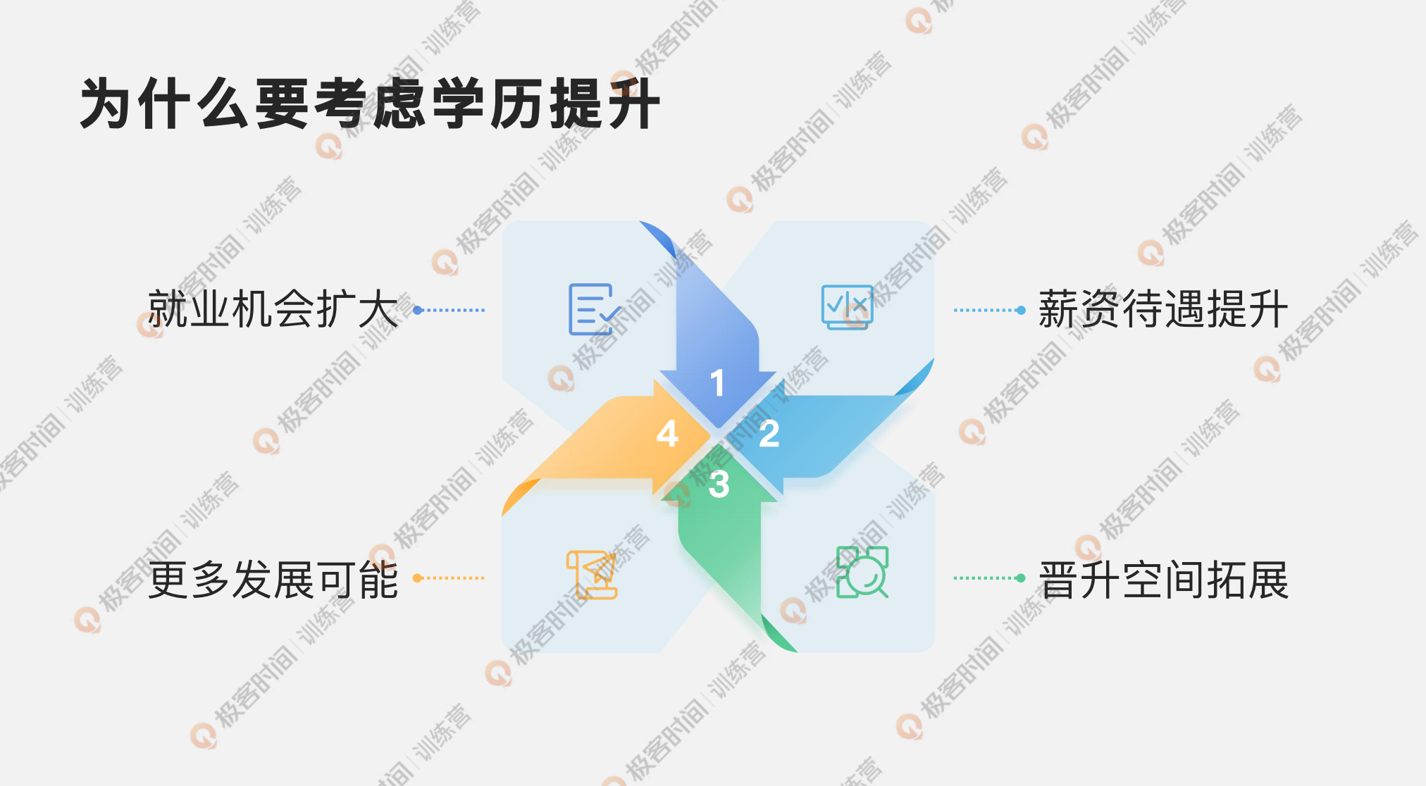 首先我们先来分享一下为什么要考虑学历提升,学历提升在我们的整个职场发展中重要吗?我们在整个职场发展中肯定是要考虑到未来的就业,要一直考虑到在不断变化的市场环境中,怎么样去保证自己的就业机会不被缩减,也就是保持自己的职场竞争力。随着职业的发展,尤其是在技术领域,学历提升它就变得更加的重要,因为企业会非常关注大家是不是科班出身,是不是本身就是计算机技术专业的,真正系统化接受过计算机技术学习和大学毕业之后发现计算机领域发展比较好,跨行来学习一些相关的内容,再进入这个行业,在底层的逻辑思维能力其实还是会有一些差距的,所以这也是为什么这个行业里面,其实企业会更加欢迎本身具备计算机背景的同学。