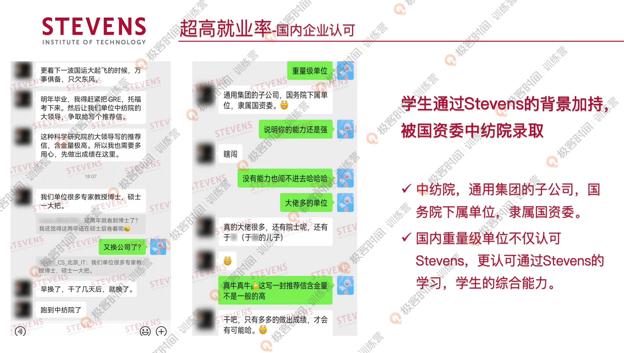 另外这个项目也是可以跨专业去学习的,如果说有同学在寻找想要进入这个行业的项目,这个就可以选择。其次就是这个项目在国内企业的认可度也是非常高的。这位同学的话,他是以史蒂文斯在读生的身份被国资委中纺院录取了。中纺院是通用集团的子公司,国务院下属单位,隶属国资委,这是我们国内很重量级的一个单位。那也可以说明史蒂文斯的学生的这个认可度。