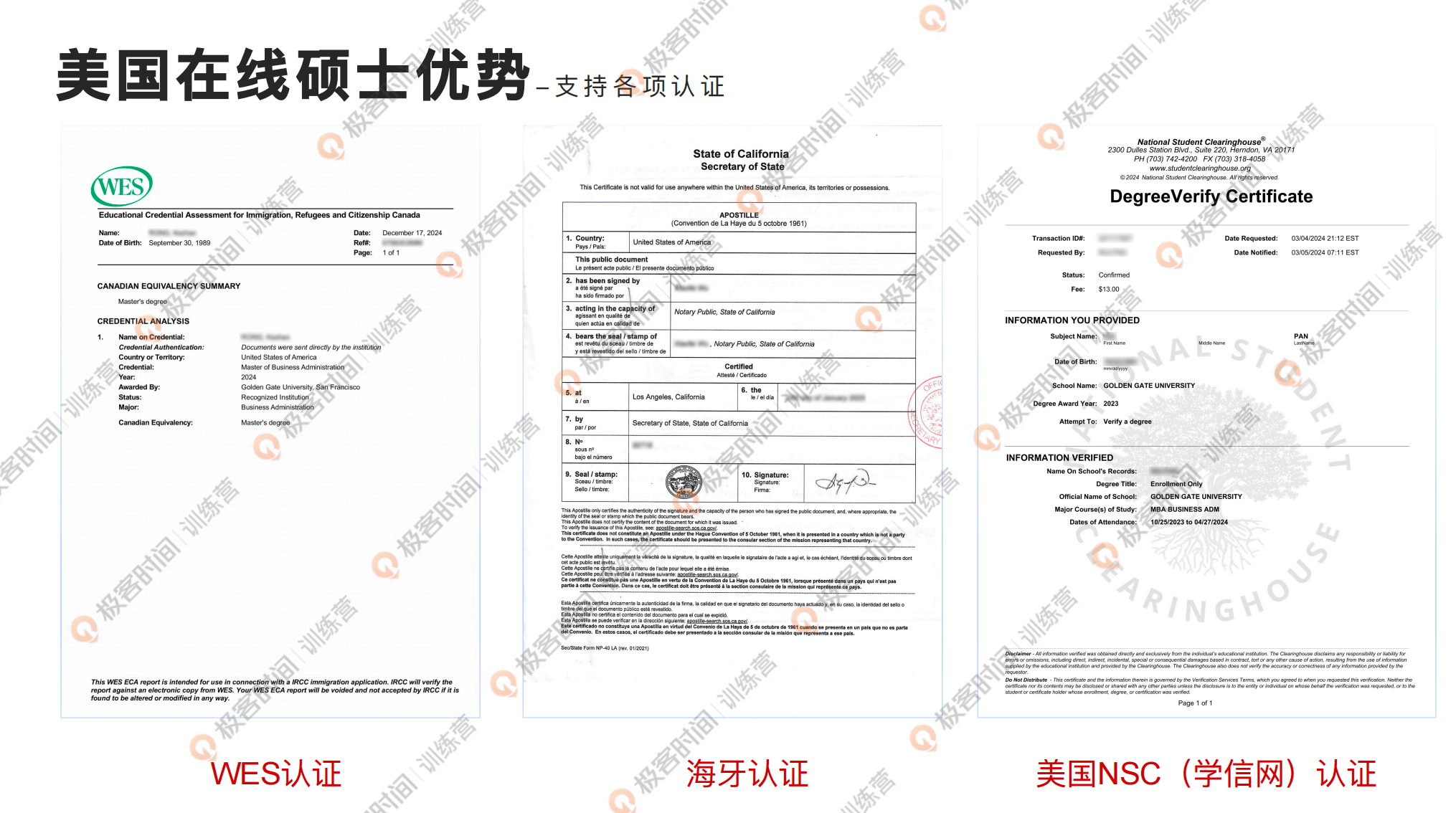 那有些同学说,我通过在线的方式学习,我怎么样去验证我的学习经历的真实性,去验证我的这个成绩单,或者是验证我的学位是真实的?首先美国也是有学信网的,简称 NSC,全称叫做美国学生信息中心,你就读美国大学,你的所有信息在美国 NSC 学信网是会有留存的,如果你需要有一个证明,直接申请 NSC 的认证就可以了,这个可以证明大家成绩单的真实性,或者是学位证的真实性。