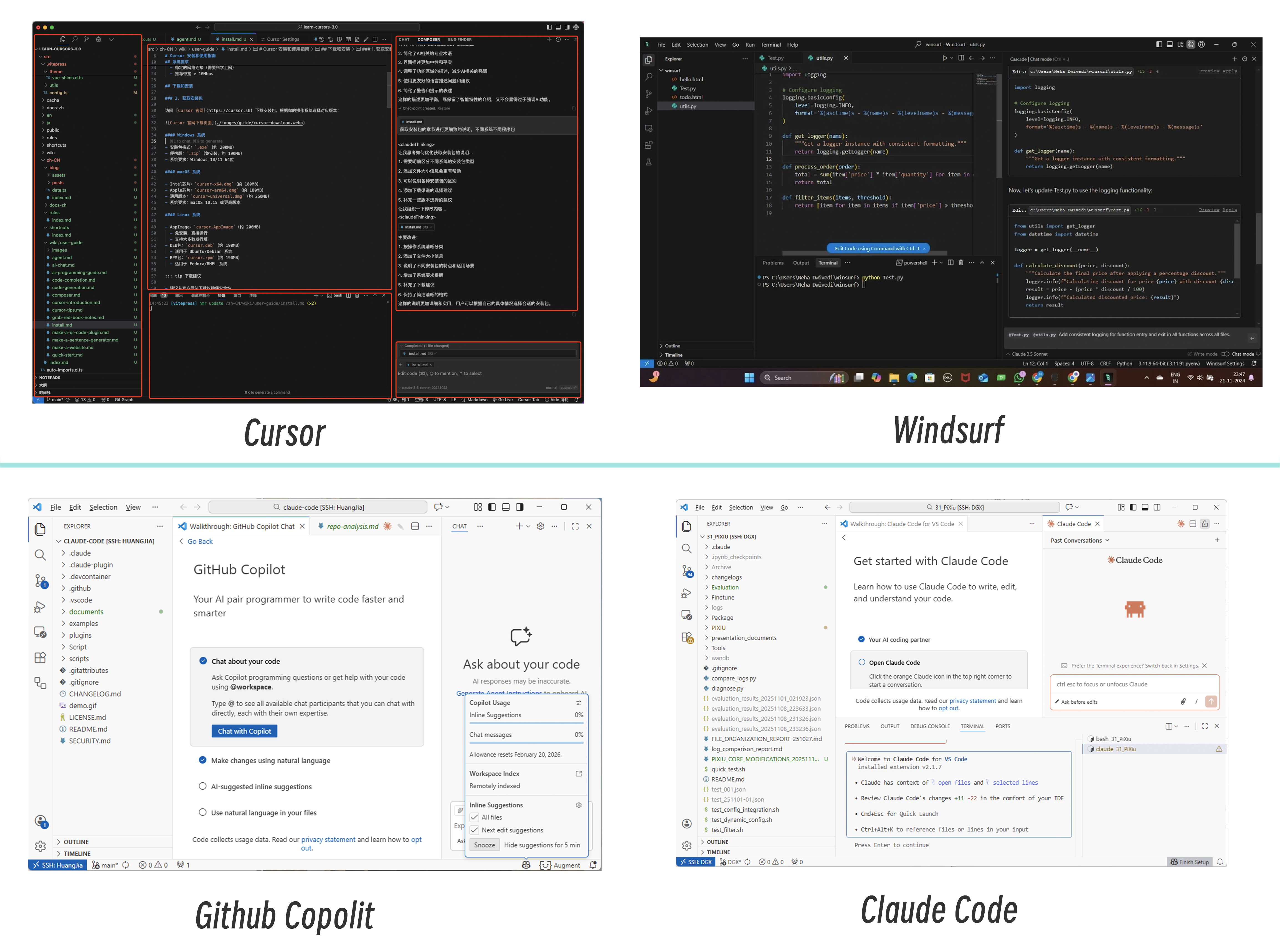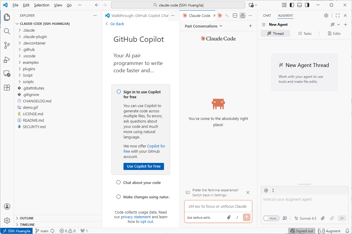 多个AI Coder可以混合使用,图中的使用Copilot\Claude Code\Augment共同分析一个代码库