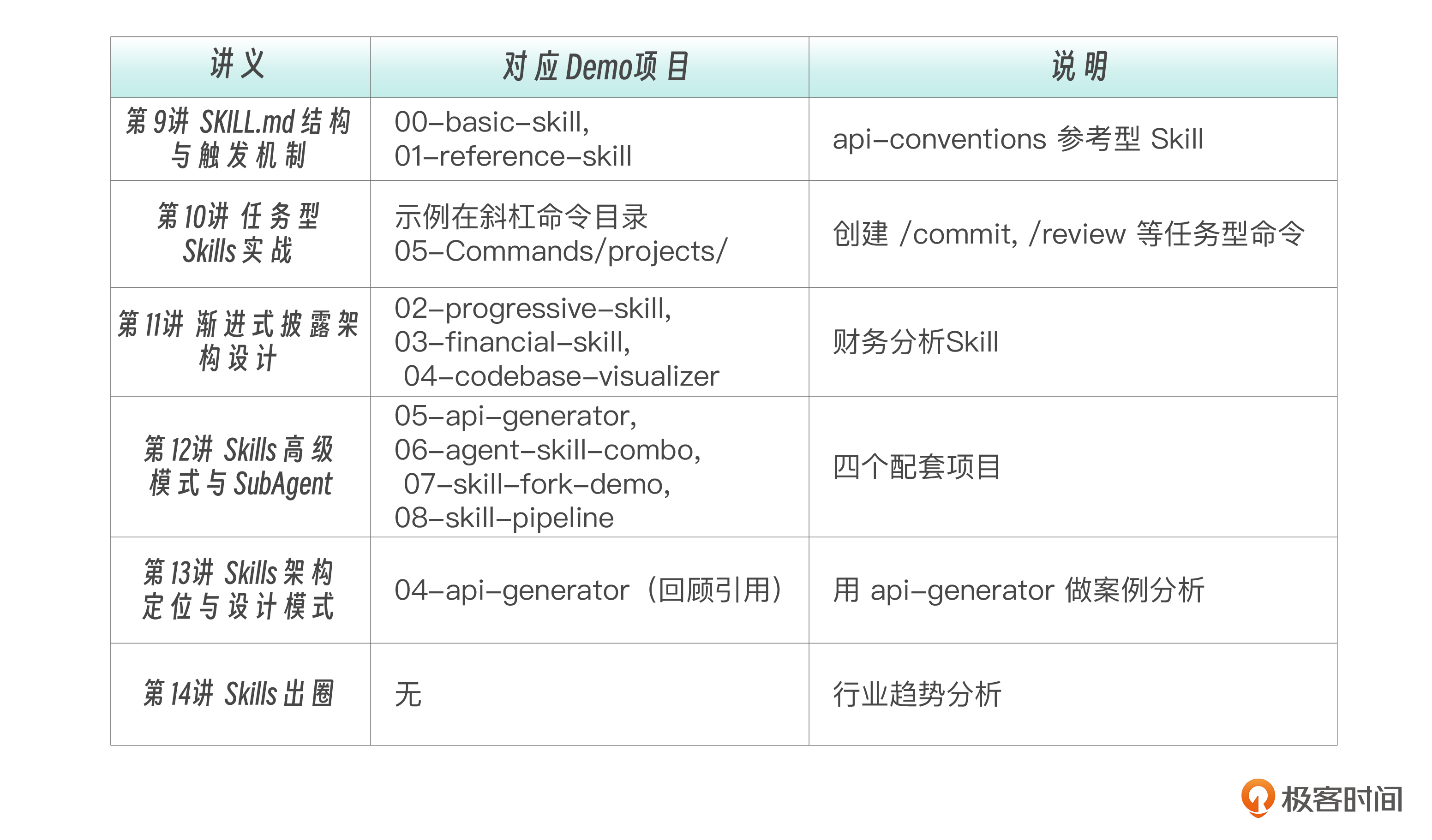 和子代理专题一样,我们把六讲的内容按能力层级来划分。