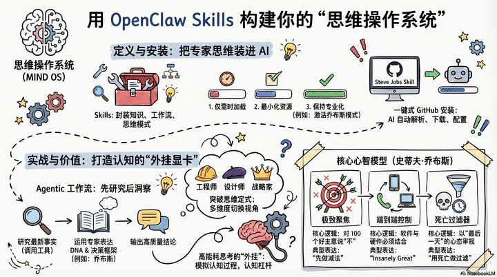 过去,要让 AI 模仿这些公众人物需要非常多的语料和精细的调整。但现在,借助 OpenClaw 的 skill,你可以直接将顶尖人物的思维模式“安装”到你的 AI 助手中,构建一个属于你的“思维操作系统”。