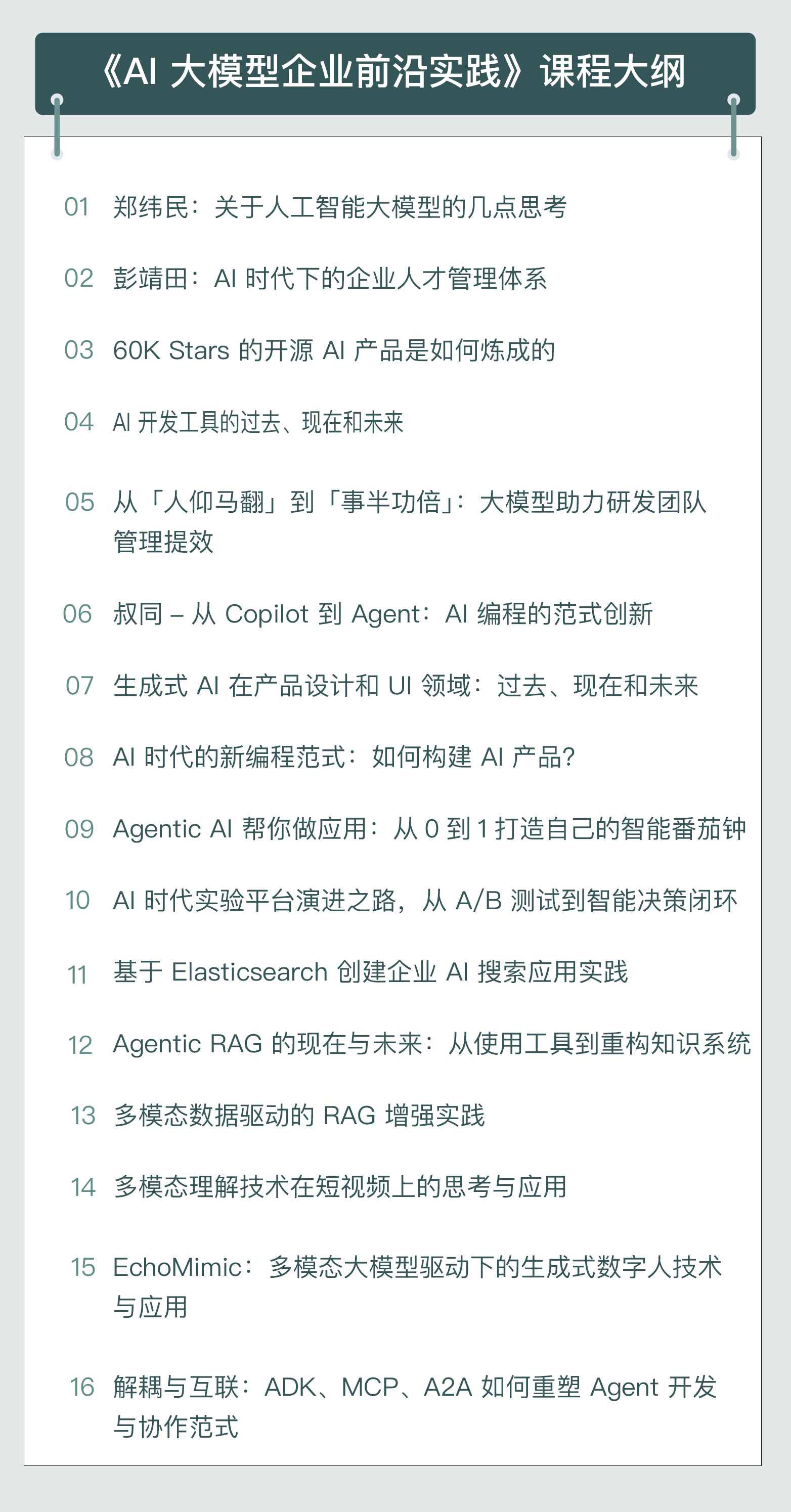 内容覆盖 AI 编程、智能决策、企业搜索、数字人生成等关键场景,助你精准卡位下一代技术浪潮,将前沿洞察转化为决胜未来的核心竞争力!