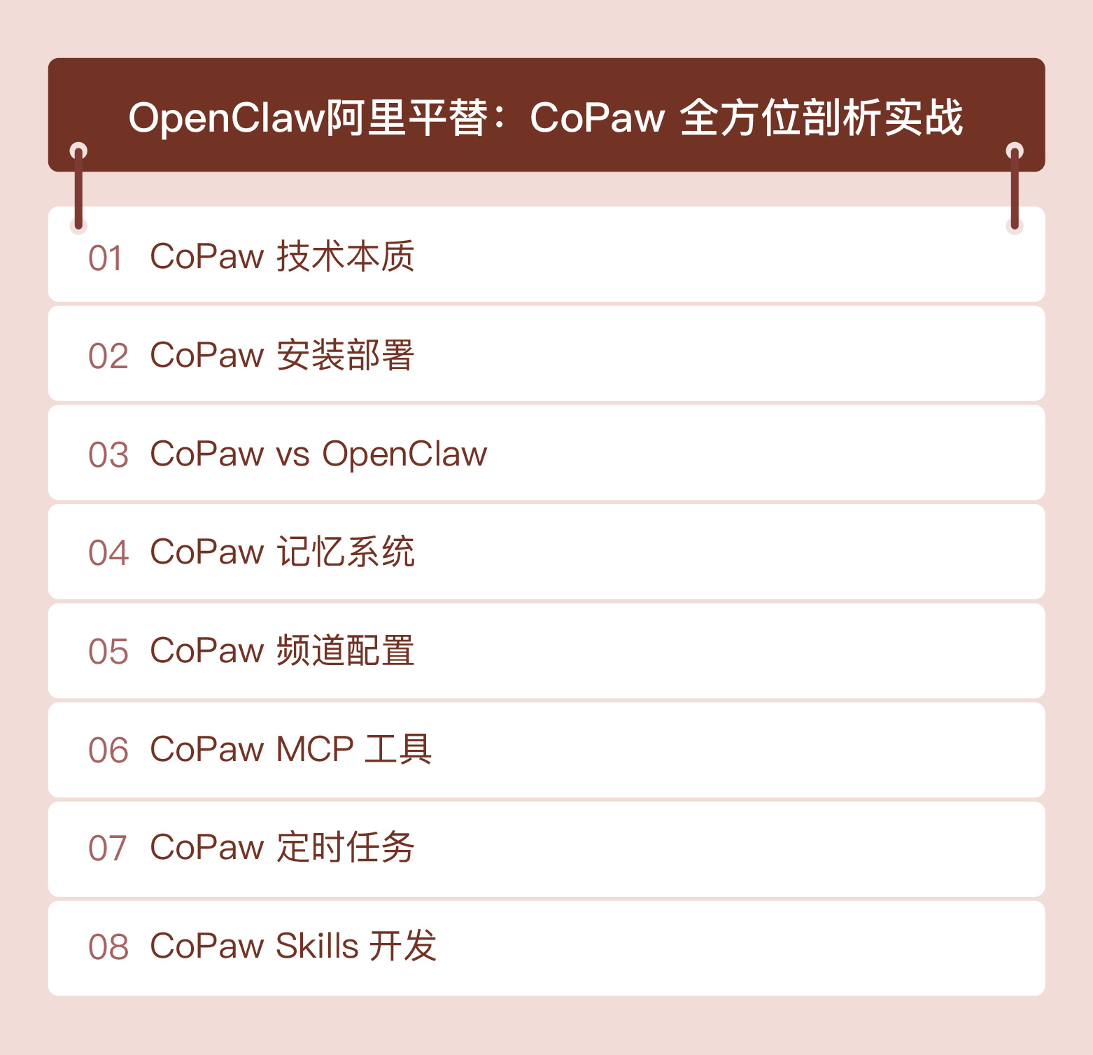 在追求效率与自动化的今天,你是否还在为多平台数据割裂、重复性工作耗时、工具配置复杂而烦恼?CoPaw 作为一款专为“协同工作台”场景打造的轻量级工具,凭借其与阿里生态的天然亲和、极简部署和高度可扩展性,正在成为 OpenClaw 用户的最佳替代方案。本课程将带你全面解锁 CoPaw 的潜能,从零构建属于自己的智能工作流。