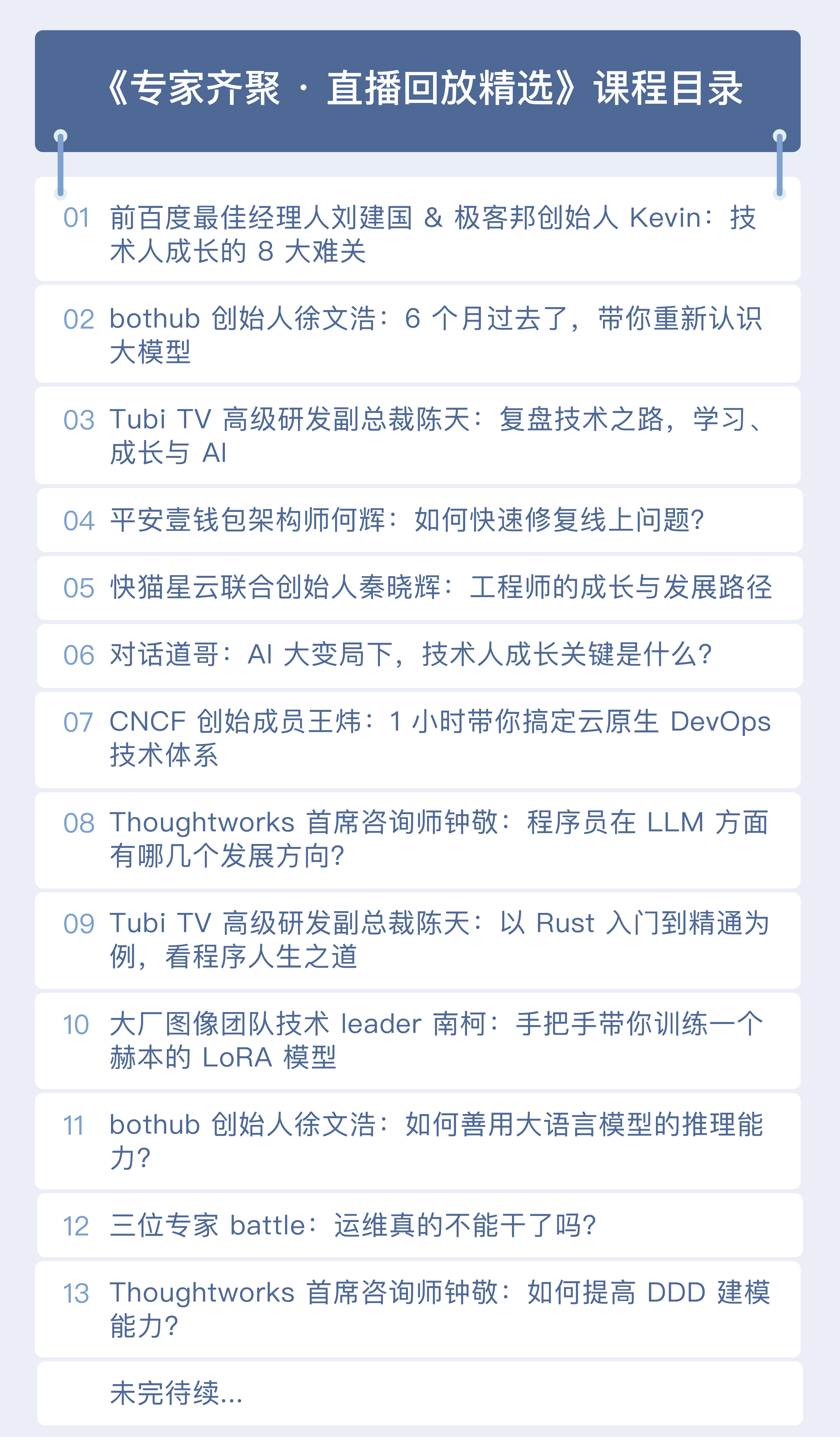 本课程为站内优质直播回放集锦,每月邀请专家讲师进行知识性分享或热点话题对谈,每月不定期持续更新,敬请期待!
